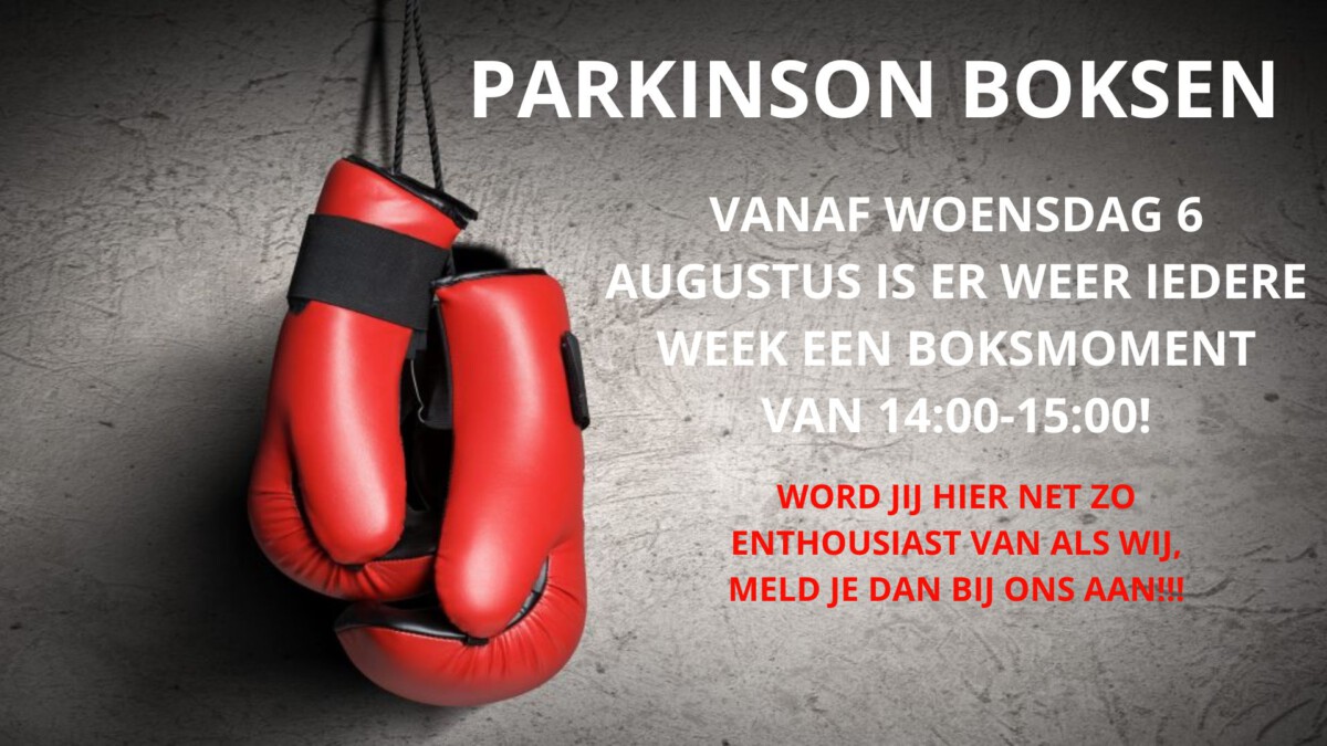 Parkinson Boksen word gegeven op de woensdagmiddag van 14.00 tot 15.00 uur.